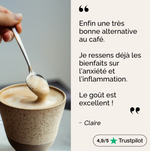 Une formule clean sans gluten, sans sucres ajoutés, 100% vegan et sans lactose. Enrichie de 2200mg d'extraits concentrés de champignons biologiques par tasse 🍄. Seulement 35mg de caféine naturelle, soit 5 fois moins qu'un café classique ☕.