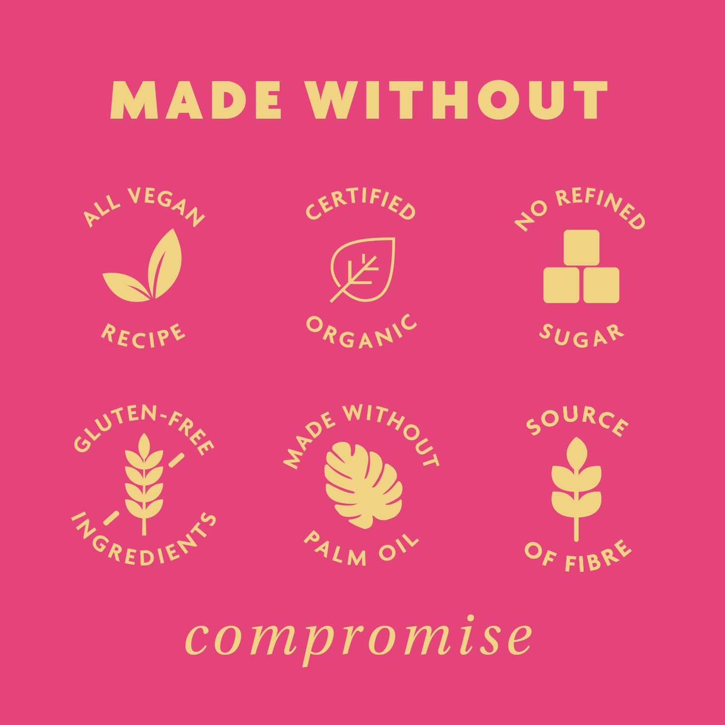 Ingredients: Organic almonds (28%), organic raw cane sugar, organic cocoa butter, organic gluten-free oat flour (7%), organic agave fiber, organic dried rice malt, organic cocoa mass, organic hazelnuts, sea salt, organic sunflower oil, organic sunflower lecithin, organic vanilla pods
